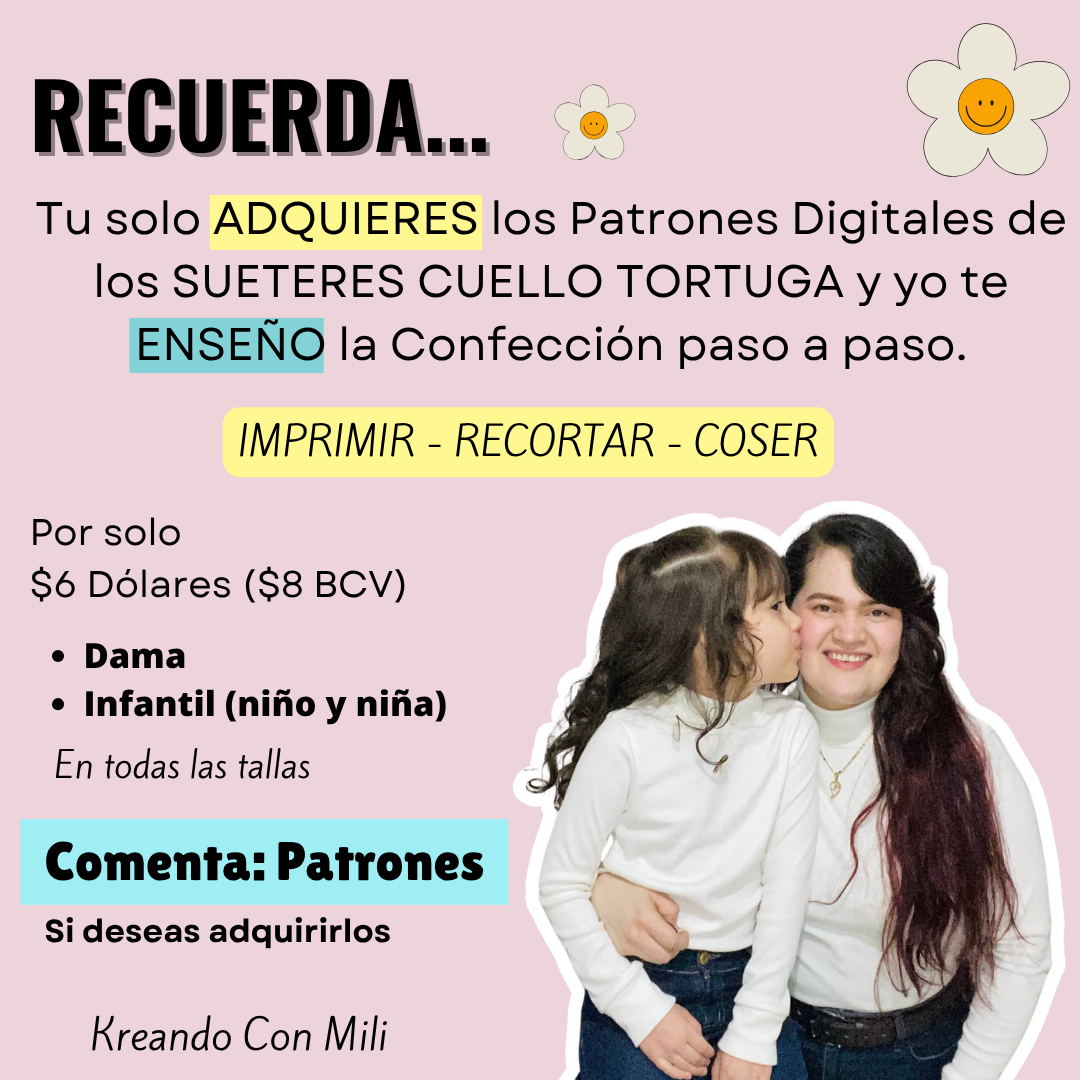 ¡Adquiere este NUEVO Pack de patrones digitales de SUETER CUELLO TORTUGA para Dama e Infantil!